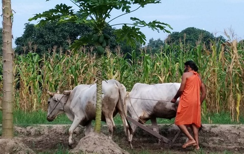 हरिद्वारः योग गुरू बाबा रामदेव आज अलग ही भूमिका में दिखे। हमेशा योग मुद्राओं में दिखाई देने वाले बाबा इस बार खेत में बैलों की जोड़ी के साथ नजर आये। इस दौरान बाबा ने हल लगाकर खेत जोता। जिसकी तस्वीरें उन्होंने सोशल मीडिया पर शेयर की। ट्विटर पर जारी ये तस्वीरें खूब वायरल हो रही है। इसमें उन्होंने लिखा है कि मेरा जन्म किसान परिवार में हुआ और कर्म से योगी बन गया। आज स्वस्थ रहने के लिए हर व्यक्ति जैसे फैमिली डॉक्टर रखता है, वैसे ही फैमिली किसान रखना पड़ेगा।