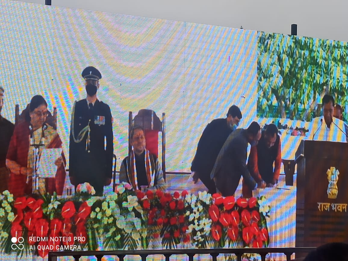 देहरादून: मुख्यमंत्री तीरथ सिंह रावत ने अपनी टीम का ऐलान कर दिया है। राजभवन में राज्यपाल बेबी रानी मौर्य ने मंत्रियों को शपथ दिलाई। इस दौरान मंत्री के तौर पर सतपाल महाराज, बंशीधर भगत, हरक सिंह रावत, सुबोध उनियाल, विशन सिंह चुफाल, गणेश जोशी, अरविंद पाांडेय, यशपाल आर्य इसके