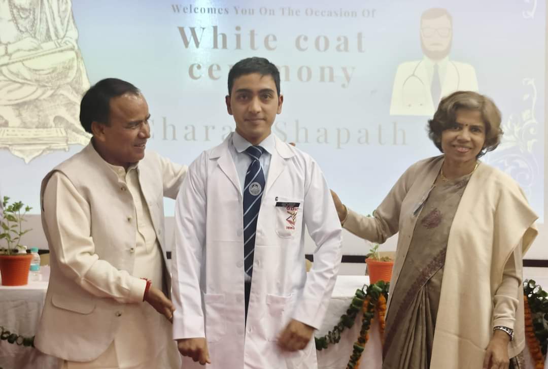 इस दौरान उन्होंने एमबीबीएस प्रथम वर्ष के छात्रों को चरक शपथ दिलाते हुये कहा कि व्हाइट कोट हमें एक चिकित्सक के रूप में पहचान दिलाता है साथ ही हमें इस जिम्मेदारी को निभाने के लिये प्रतिबद्ध करता है। जो याद दिलाता है कि हमारे हाथों में किसी का जीवन है और हमें इसकी रक्षा करनी है। उन्होंने छात्रों को यह भी शपथ दिलाई कि हम अपने ज्ञान, क्षमता और संवेदनाओं के साथ मानवता की सेवा करेंगे।